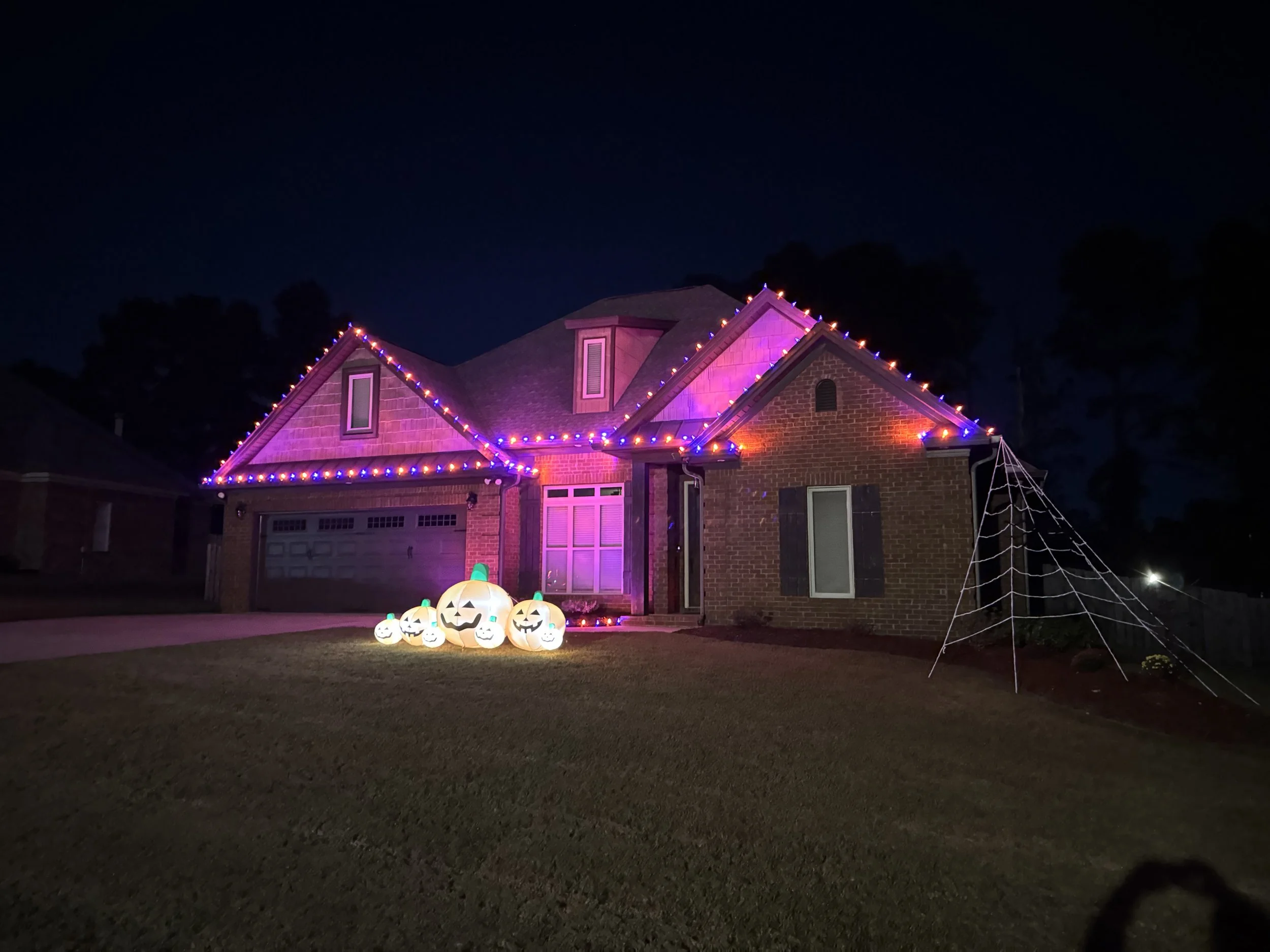 We can install your lights in Montgomery, AL in October for Halloween using purple/orange lights, purple/green lights, or just about any combination that you can dream up. After October 31st, we can simply change the bulbs without the need to reinstall!
